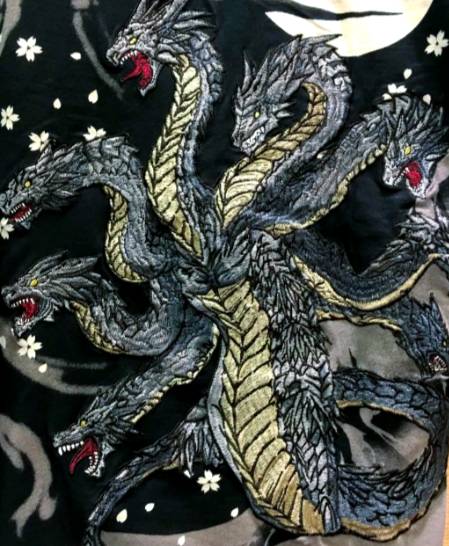 八岐大蛇的形象承载着日本先民对自然力量的敬畏与解读。其八头八尾的巨型躯体,与斐伊川的鳞状沙洲、蜿蜒河道形成呼应,暗示着洪水泛滥的破坏力;腹部溃烂流血的特征,则映射出铁砂混浊河水的制铁文化。这种将自然现象神格化的创作手法,使八岐大蛇成为连接神话与现实的桥梁。