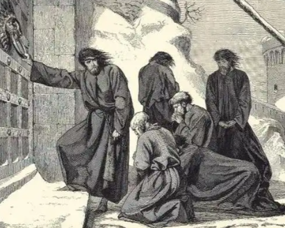 当他们抵达卡诺莎城堡时,教皇却紧闭城堡大门,拒绝立即接见。亨利四世为了表达诚意,脱下华丽的王袍,穿上象征忏悔的麻衣,赤着脚站在城堡外的雪地里。鹅毛大雪纷纷扬扬地飘落,寒风如刀割般刺痛着他的身体,但他依然坚定地站立着,从 1 月 25 日至 28 日,整整三天三夜。