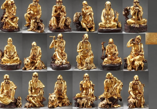 在民间,降龙罗汉因济公传说而广为人知,其“疯癫济世”的形象契合大众对“英雄降魔”的想象;坐鹿罗汉则因教义权威性,成为高僧大德的象征。艺术创作中,坐鹿罗汉常被描绘为骑鹿说法、面带微笑的智者形象,传递“以智慧化解苦难”的深层寓意;降龙罗汉则多持锡杖、脚踏龙形,强调“以力量降伏外道”的直观冲击。