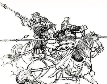 罗通小将与铁雷银牙战到个三十回合,不分胜败。杀得银牙汗流脊背,把踹牌噶啷一响抬住了槍,银牙开口说:“好利害的罗蛮子。”罗通说:“你敢是怯战了么。”银牙道:“呔!小蛮子,那个怯战。今日铁将军不取你命,誓不进关。”罗通说:“本帅不挑你下马,也誓不回营。”吩咐两边啸鼓,鼓发如雷,两骑马又战起来,正是: