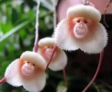 然后是“猴面兰”,这种植物的形状酷似猴子的面部,因此得名。它的花瓣像猴子的脸,中间的突起像猴子的眼睛和鼻子,给人一种生动有趣的感觉。猴面兰的存在,让我们看到了大自然的幽默和生动。