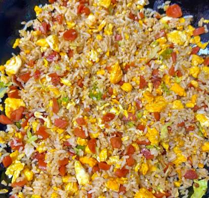 四、米饭入锅,翻炒均匀